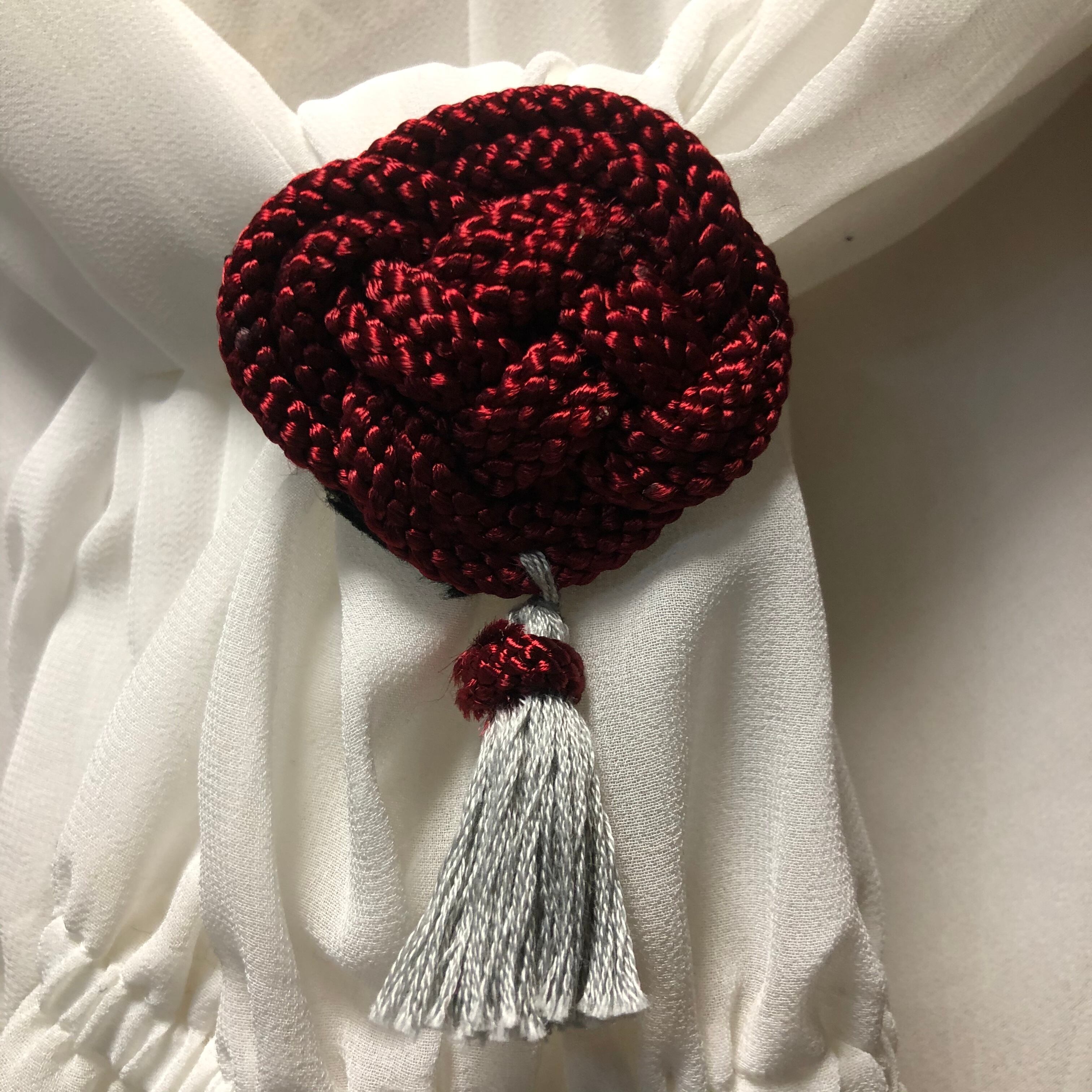 カラーはワインレッド、タッセルは薄グレーです。