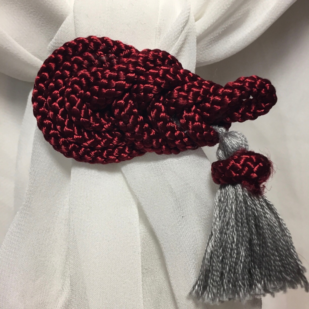 カラーはワインレッド、タッセルは薄グレーです。