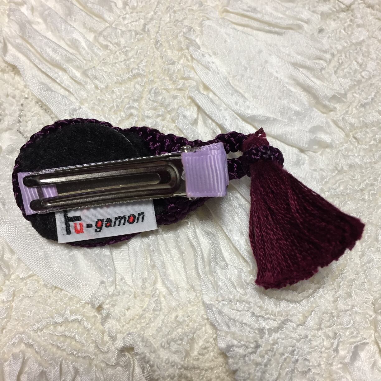 ヘアアクセサリとしてはもちろん、お洋服に付けたりスカーフ止めや帯飾り、帽子に付けてもインパクトのあるアクセです。