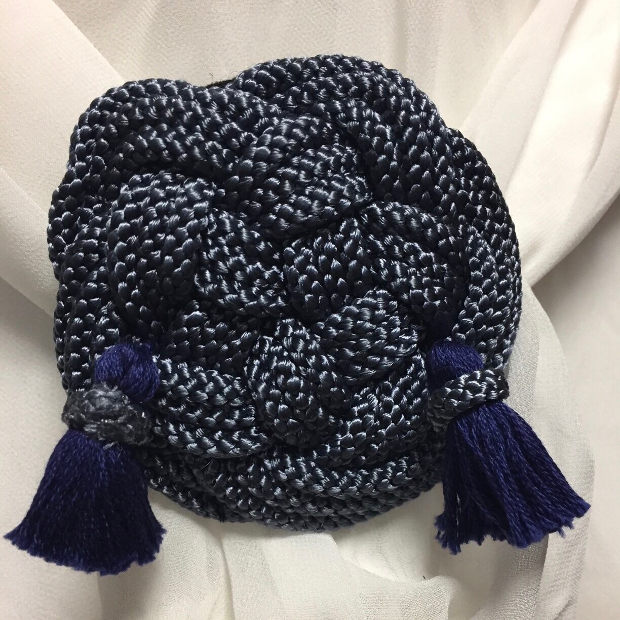 カラーはブルーグレー、タッセルは紺です。