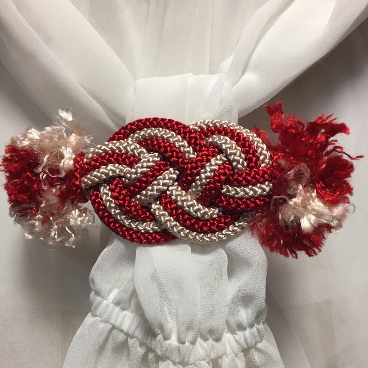 カラーは赤×ピンクベージュ。